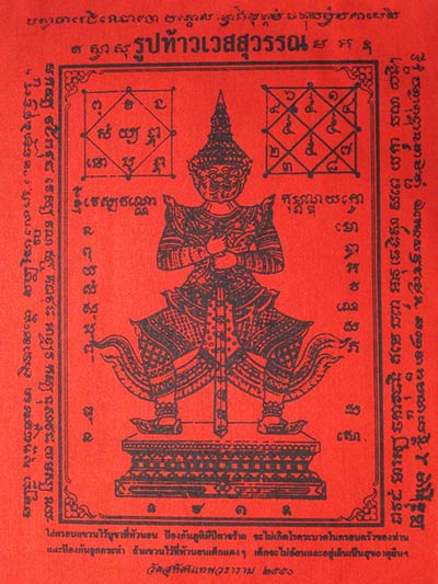 (อิติปิโสภะคะวา ยะมะราชาโน ท้าวเวสสุวรรณโณมะระนังสุขัง อะระหังสุขะโต นะโมพุทธายะ) และท่านพระครูภัทรวิริยะคุณแห่งคณะ 2 วัดสุทัสน์เทพวรารามได้เมตตาให้คาถา “อาวุธพุทธเจ้า”